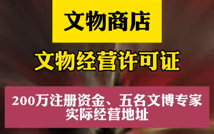 0次播放 | 00:07文物商店设立条件:200万注册资金五名中级文博专家实际经营地址