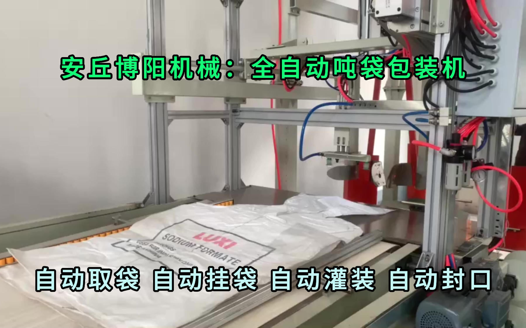 0次播放 | 00:31碳酸锂全自动吨袋包装机+吨袋装车机 全自动吨袋装车系统工作流程