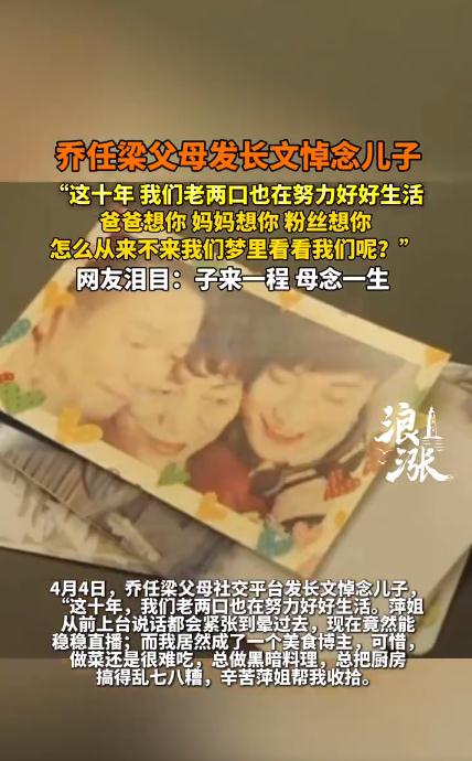 4月4日,又是一年清明时,在这个缅怀亲人的日子里,在某平台拥有800多万粉丝的乔任梁父母,也是发布了一篇让人泪目的长文,来悼念自己的儿子,看完之后,让很多网友和粉丝泪目。长文中,回忆了乔任梁成长的点点