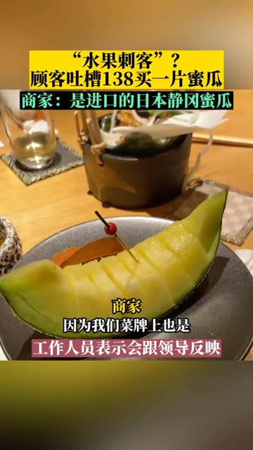 15次播放 | 01:18顾客吐槽日料店一片蜜瓜卖138元,商家:日本静冈蜜瓜本来拿货就贵。