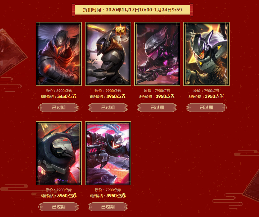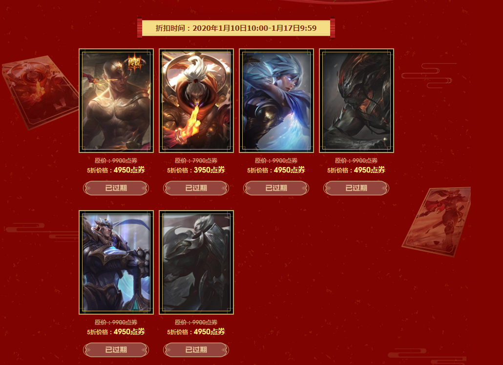 说起来,最近因为糟心事太多,大家其实对LOL相关的信息关注都少了很多,神游君也是最近才注意到的这个活动,看日期,这个活动从年前就已经开始了……“征程2020精选皮肤限时五折”活动已经进行了很久了,不知