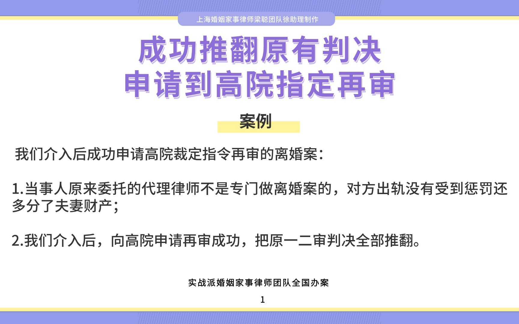 上海婚姻家事律师梁聪:成功推翻原有判决,申请到高院指定再审