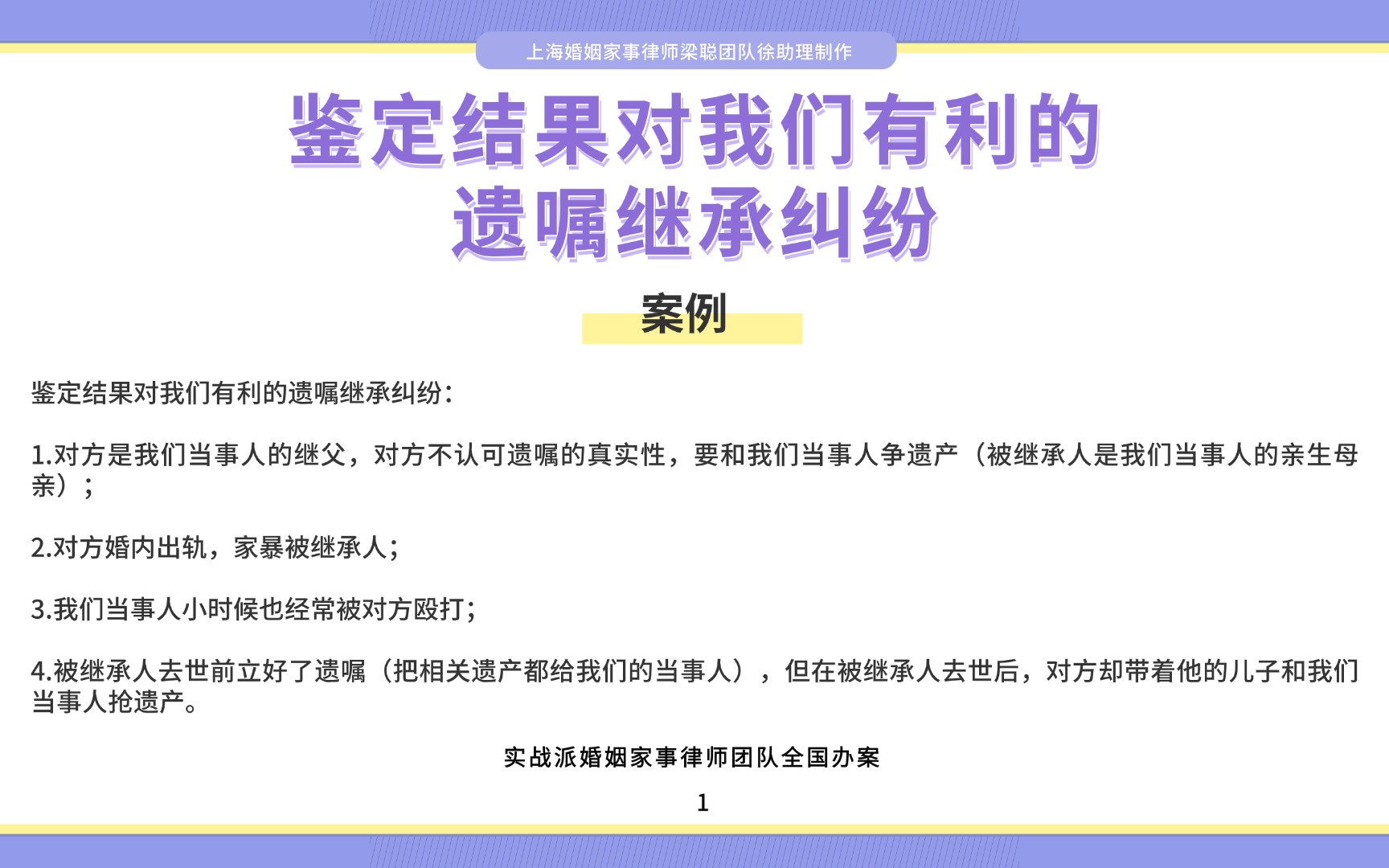 0次播放 | 00:13上海离婚律师梁聪律师团队原创:鉴定结果对我们有利的遗嘱继承纠纷