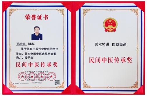 近日,中医传承人陈金恩获颁“民间中医传承奖”。该奖项由全国中医优秀人才评审委员会、“十四五”中医药文化组委会、世界卫生组织传统医学自然科学研究院、品牌中国名人评选委员会等业内权威机构联合授予,旨在表彰