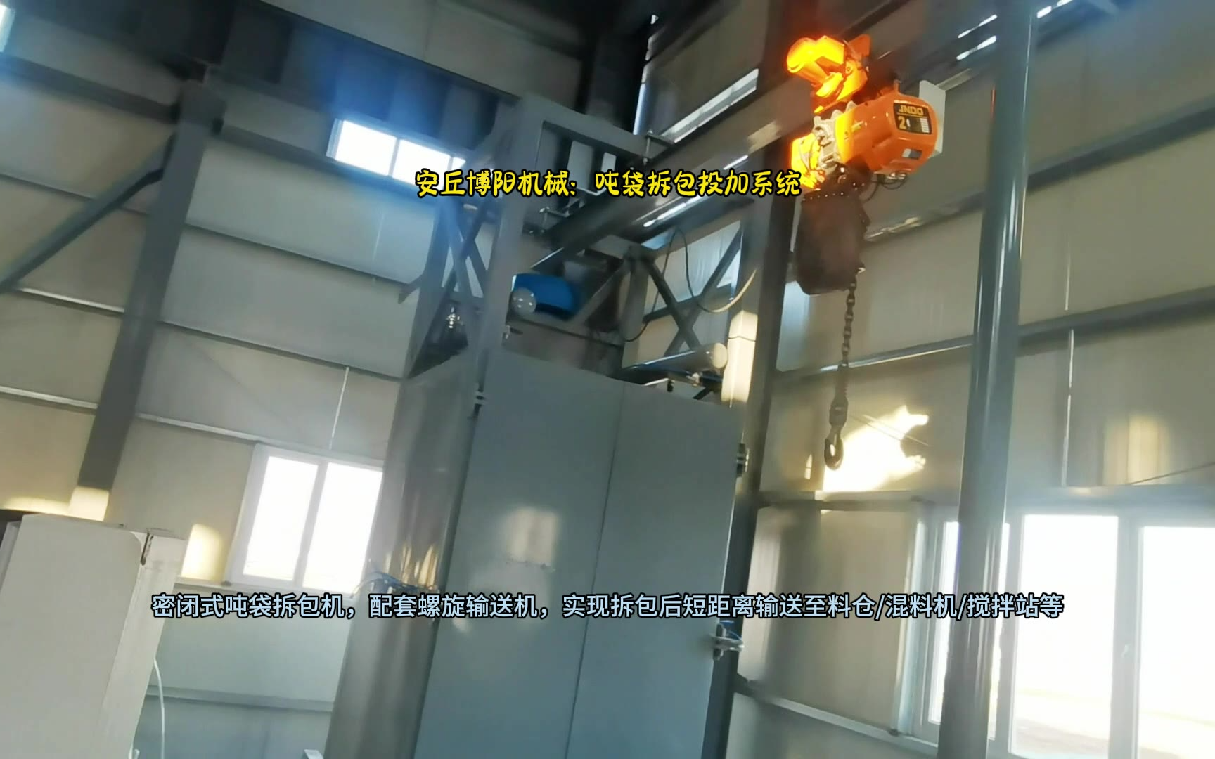 0次播放 | 00:28除尘灰吨袋自动破包机 密闭式吨袋拆包装置 环保无尘