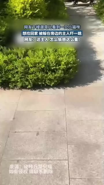 网友下楼遛弯儿看到一只小猫咪,想捡回家,被躲在旁边的主人吓一跳,网友:这主人,怎么偷感这么重!