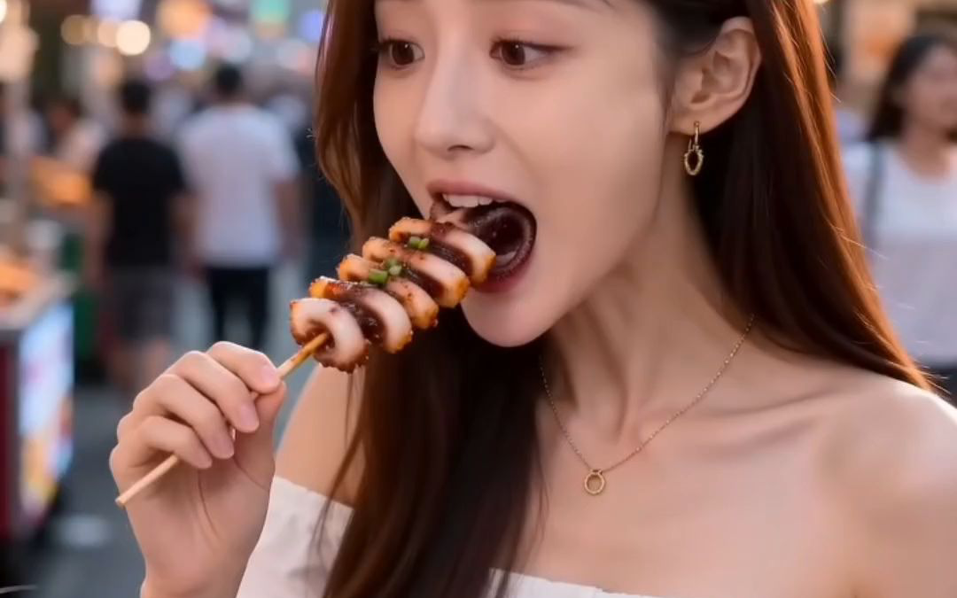 猫咪摆摊:铁板炭烧鱿鱼,真的好好吃!#猫咪#美食#摆摊