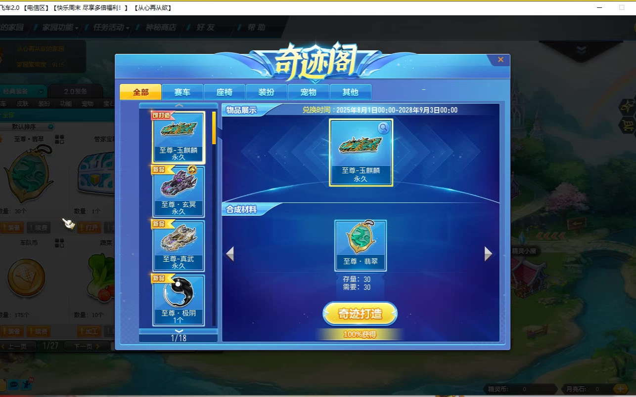 QQ飞车朕哥:S车至尊玉麒麟人气高!返场拿下最喜欢的皮肤
