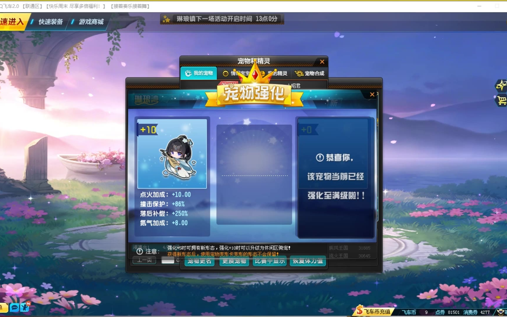 QQ飞车朕哥:游鸿蓝鲸强化10技能很强了!五折宠物强化卡拉满