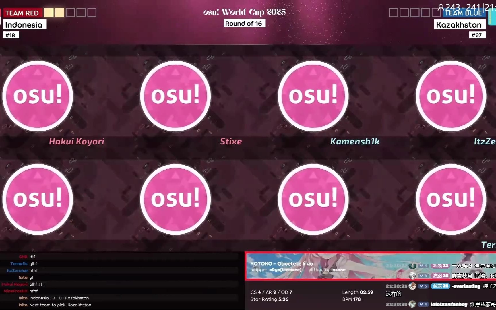 [osu!]OWC 2025 16强赛[败者组](印尼)vs(哈萨克斯坦)