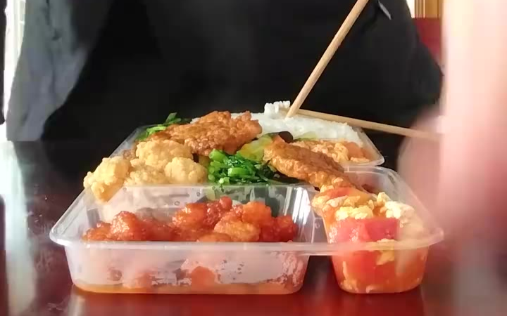 神坡农二的晚餐之旅今天晚饭吃盒饭青菜白菜红色鸡米花大排骨美食节目农二的快乐生活