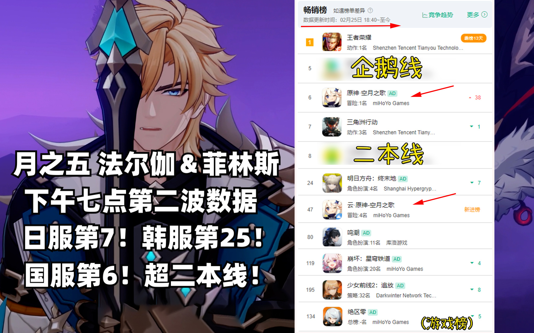 (原神)月之五 法尔伽&菲林斯 卡池流水杀疯了!国服第6!第二波超越二本线!日服第7!韩服第25!美