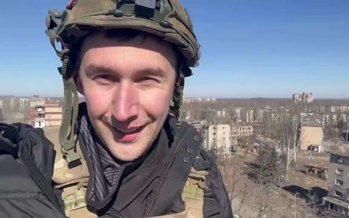俄罗斯国际象棋选手谢尔盖·卡尔亚金,在被俄军解放的乌克兰阿夫迪伊夫卡。