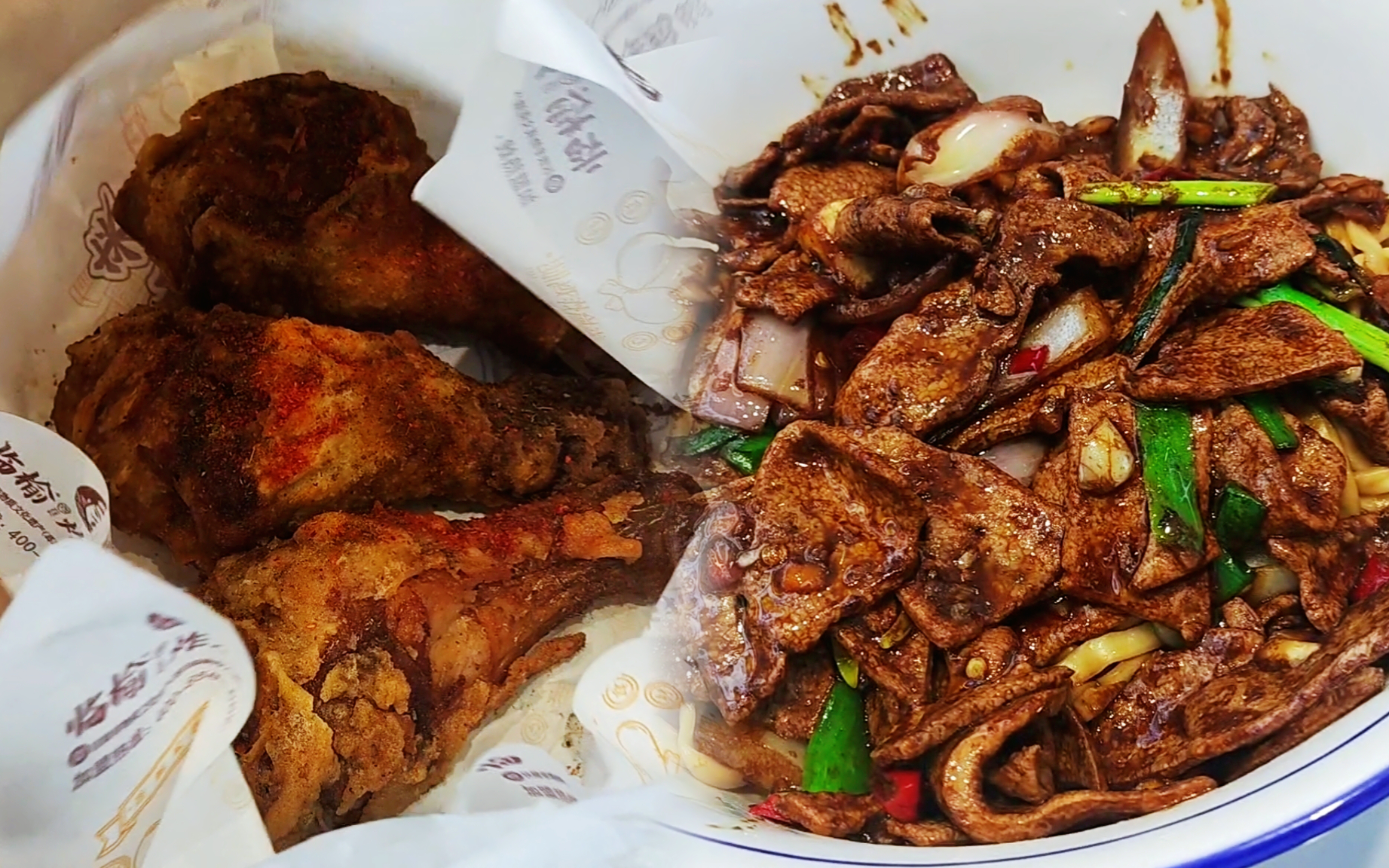 炒肝拌面加炸鸡腿