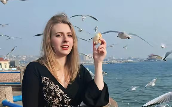 德国大妹子在青岛喂海鸥