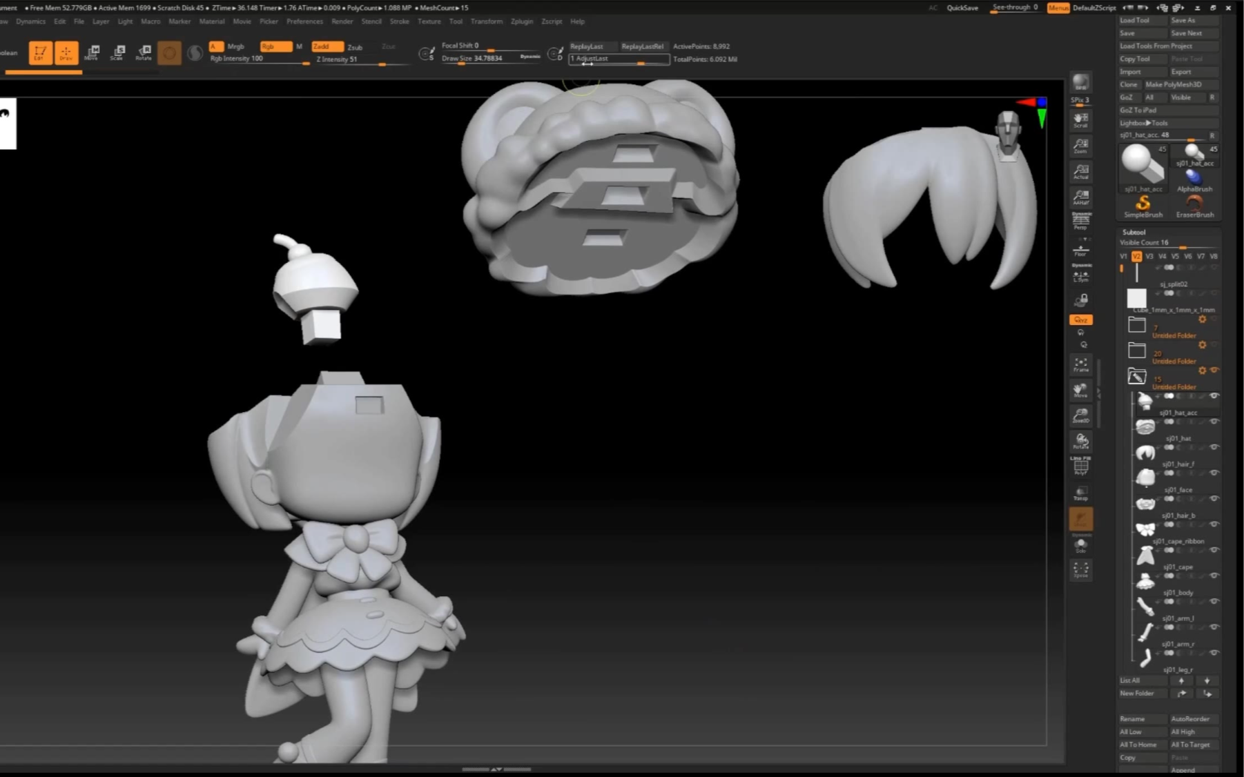 ZBrush SD角色建模入门练习 - 6.拆分与图纸导出1