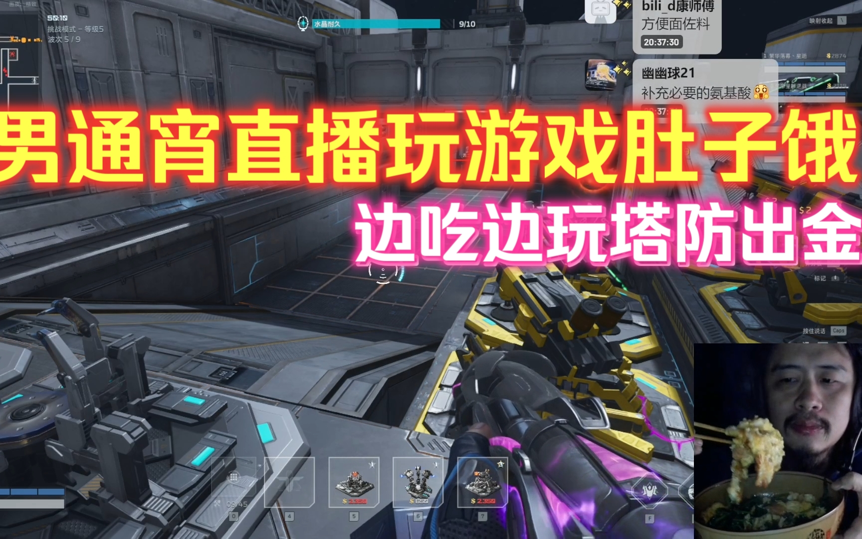 宅男通宵直播玩游戏肚子饿,7个鸡蛋豌豆尖搭配面条边吃边玩,塔防出金