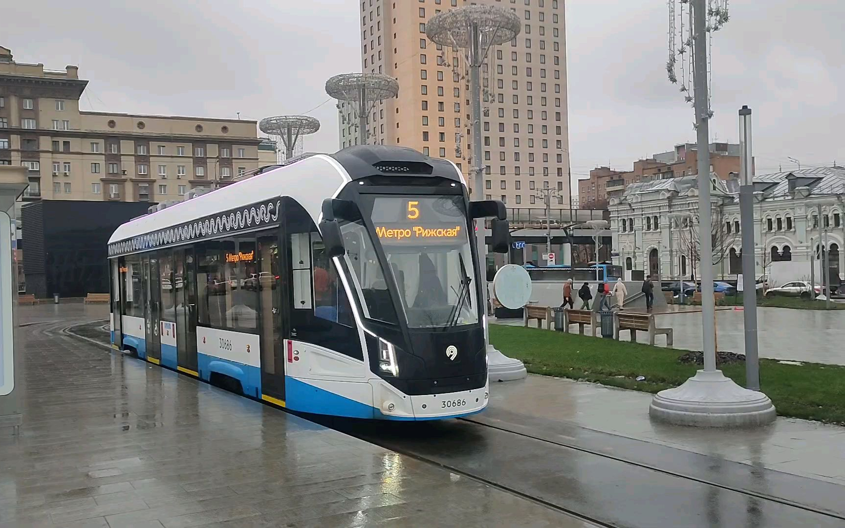 莫斯科5路有轨电车侧面展望:地铁站“里加站”——白俄罗斯火车站