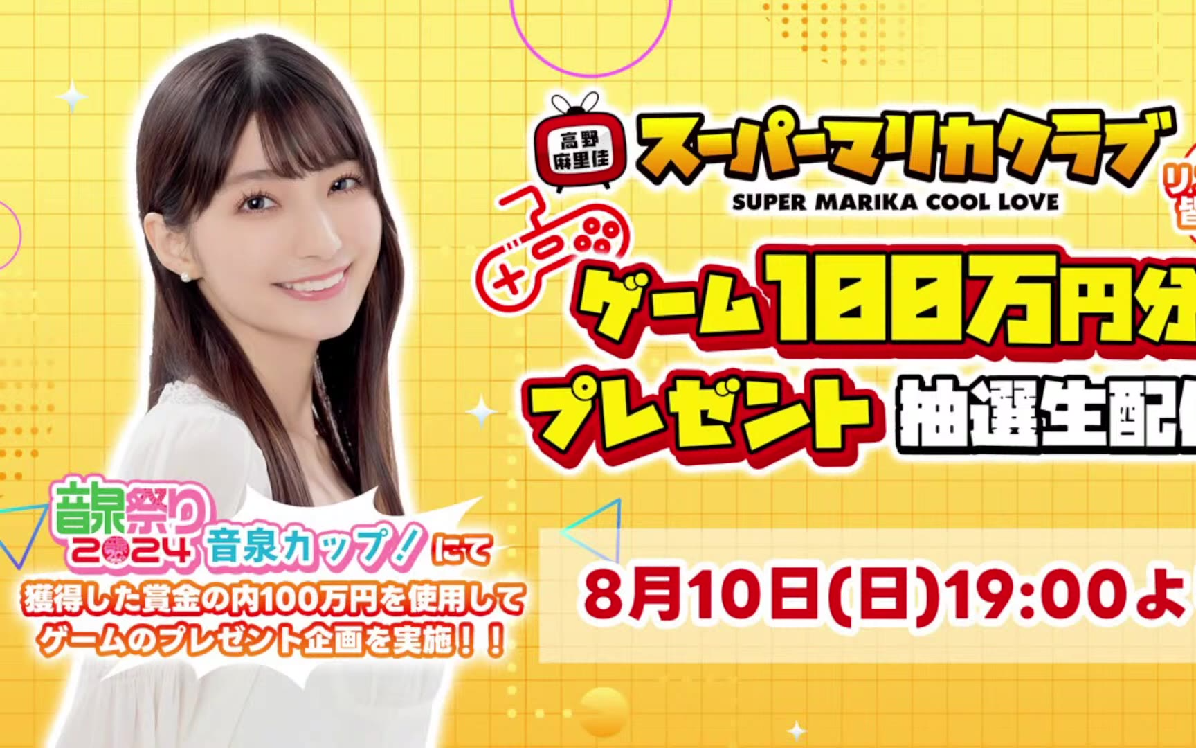 高野麻里佳のスーパーマリカクラブゲーム100万円分プレゼント抽選生配信【8/10(日)19:00~】