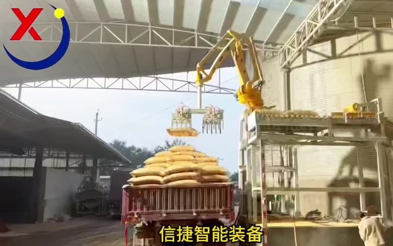 解放人力,告别重负,提升效率,加速交付,麸皮卸车码垛机器人
