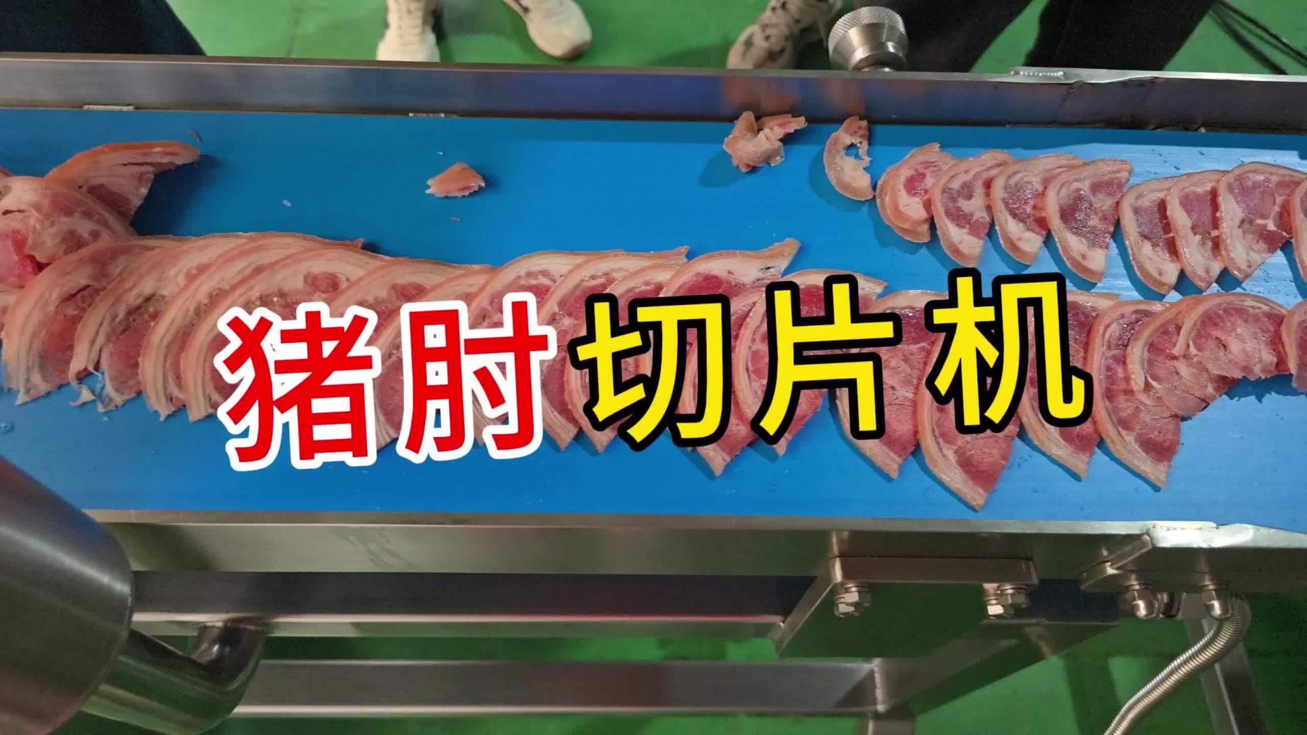 无骨猪肘肉切片加工,无尾料的冻熟肉切片机
