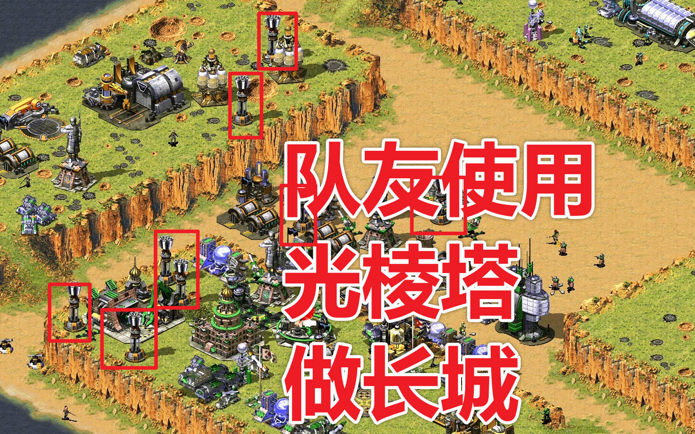 光棱塔做长城,可攻可守太强了,win10系统玩红警