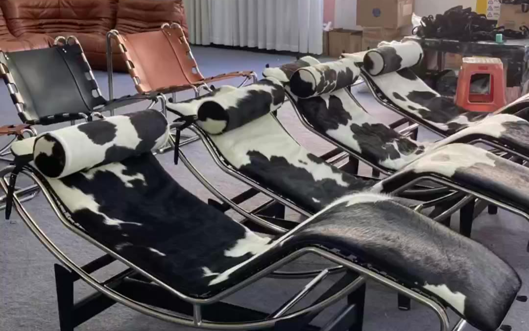 每张都不一样花色的奶牛皮柯布西耶躺椅lc4