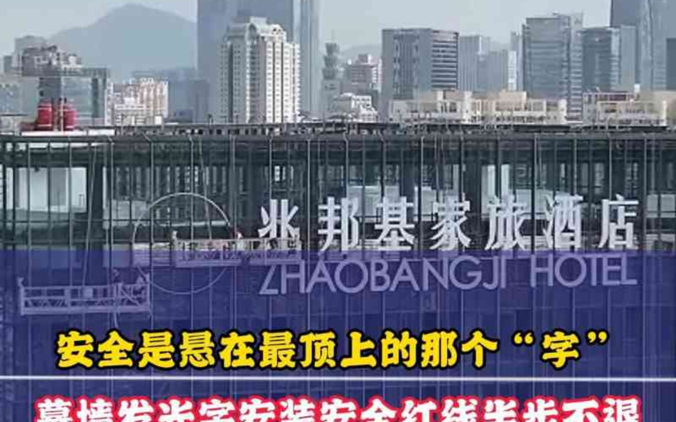 安全是悬在最顶上的那个“字”幕墙发光字安装安全红线半步不退