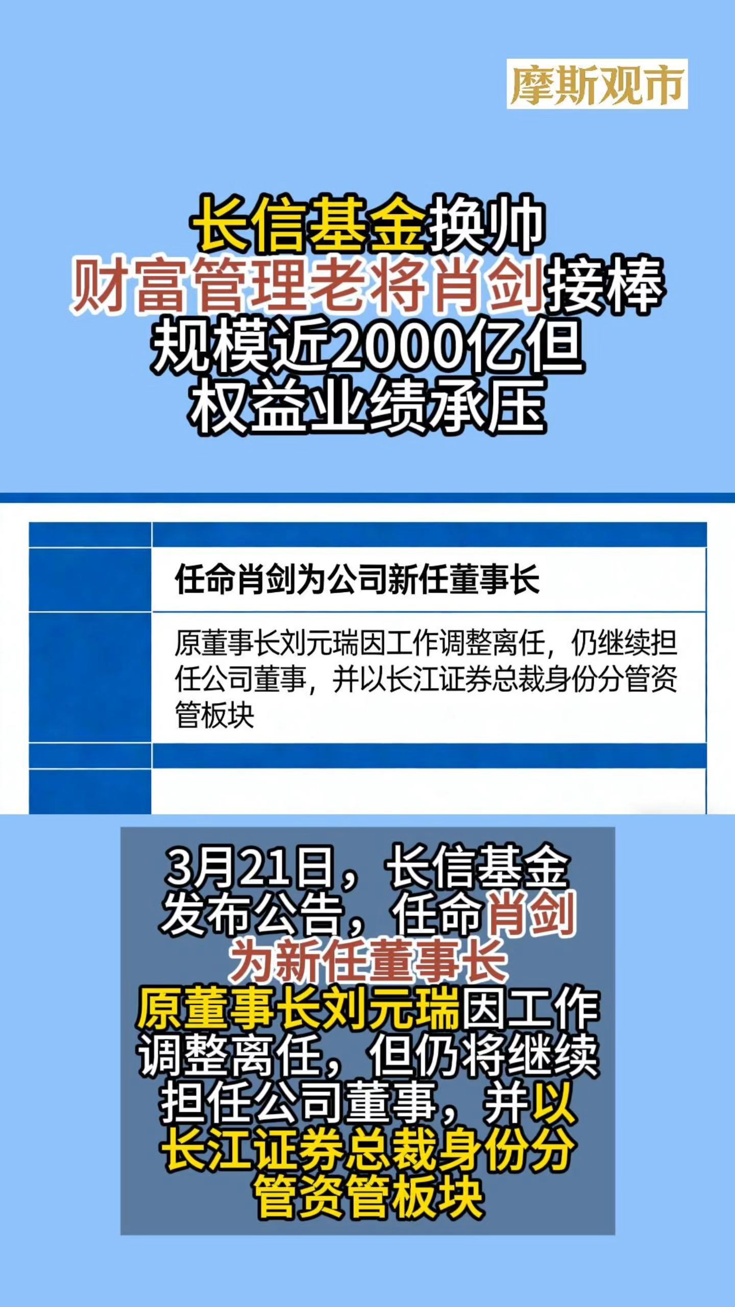 长信基金换帅,财富管理老将肖剑接棒,规模近2000亿但权益业绩承压