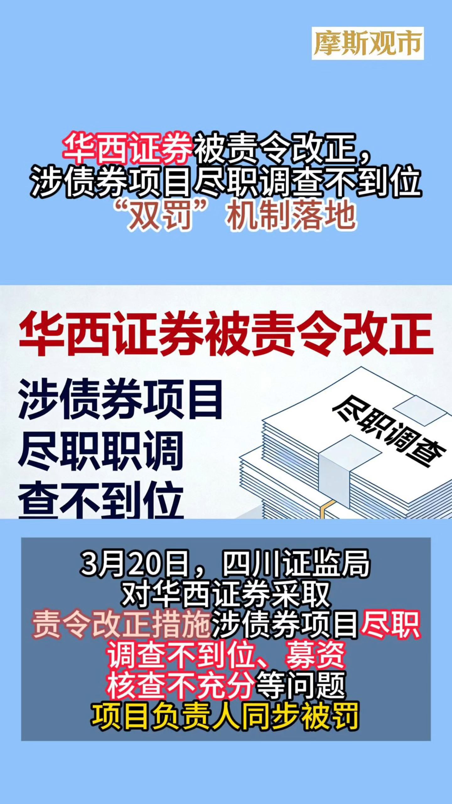 华西证券被责令改正,涉债券项目尽职调查不到位等