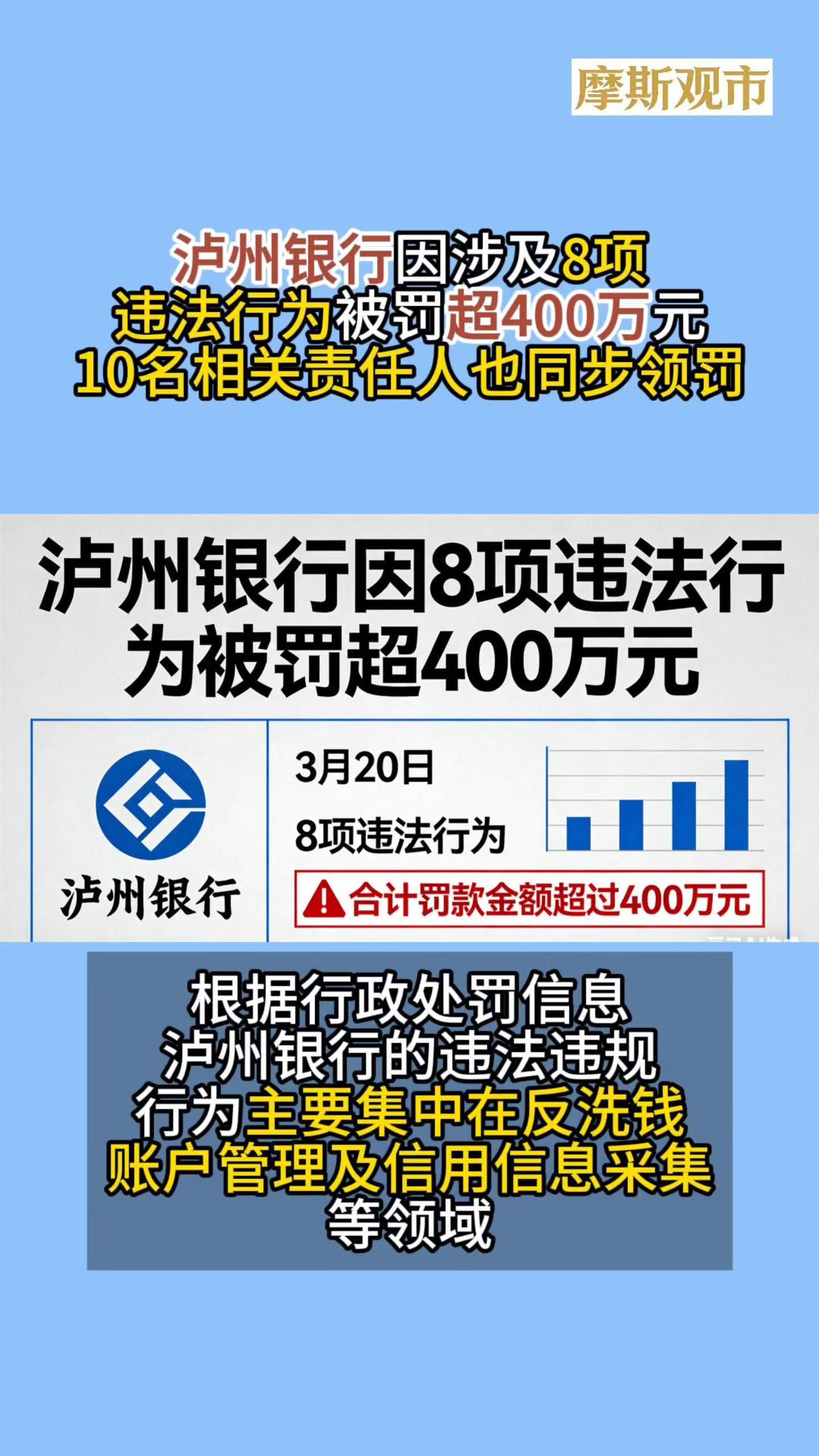 泸州银行因8项违规行为被罚超400万元!