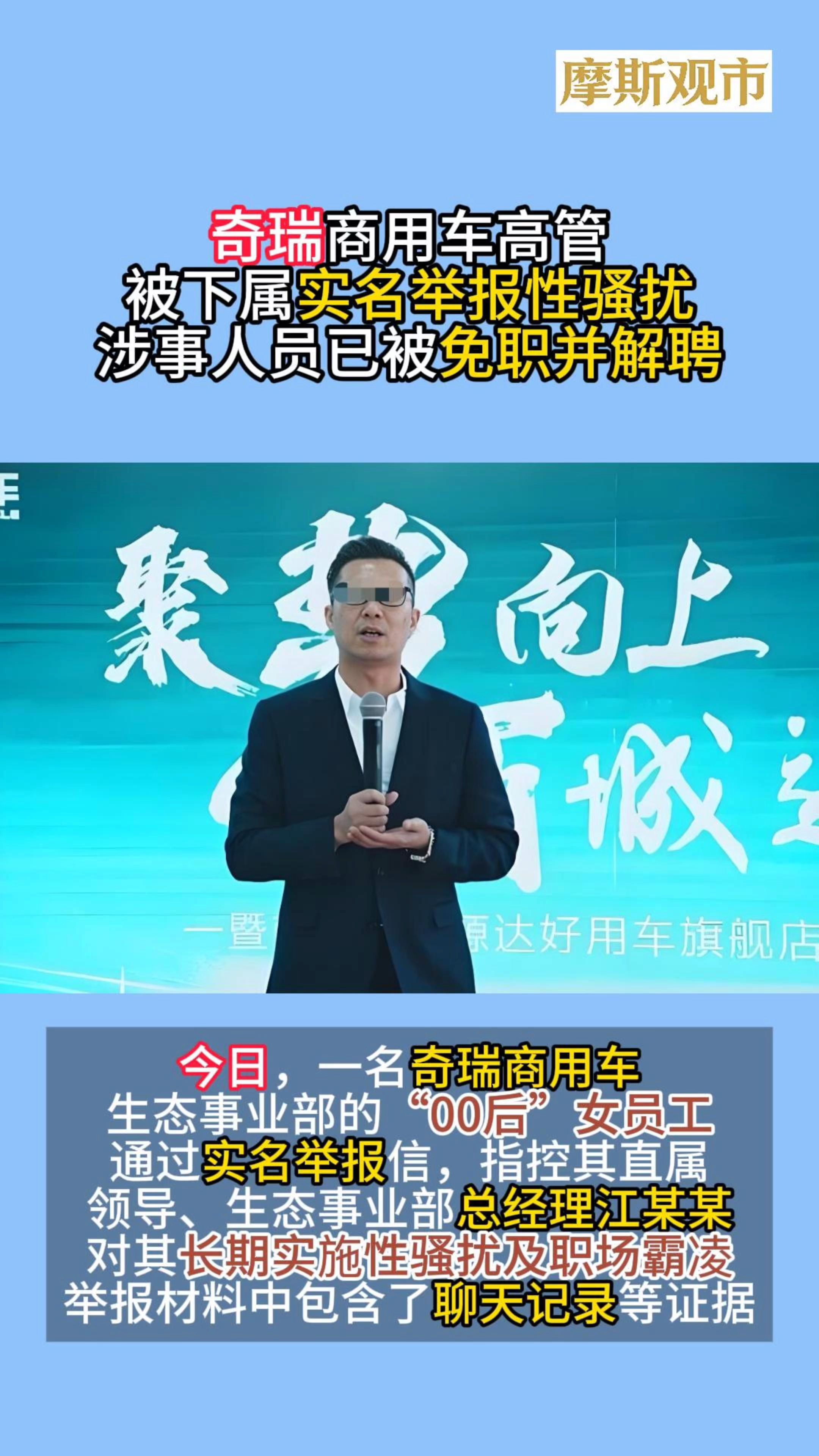 奇瑞00后女员工实名举报公司性骚扰