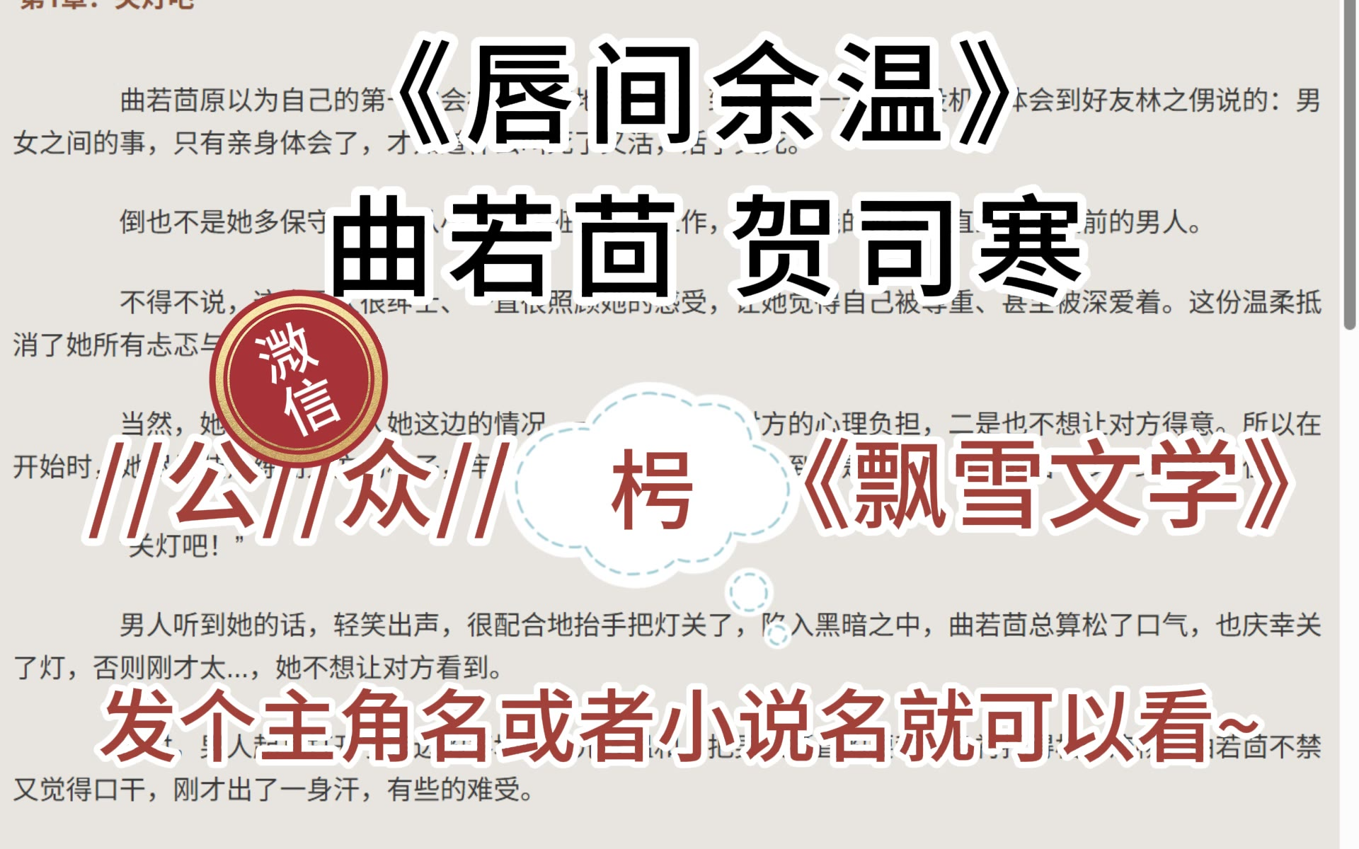 《曲若茴贺司寒》小说:贺司寒曲若茴——唇间余温