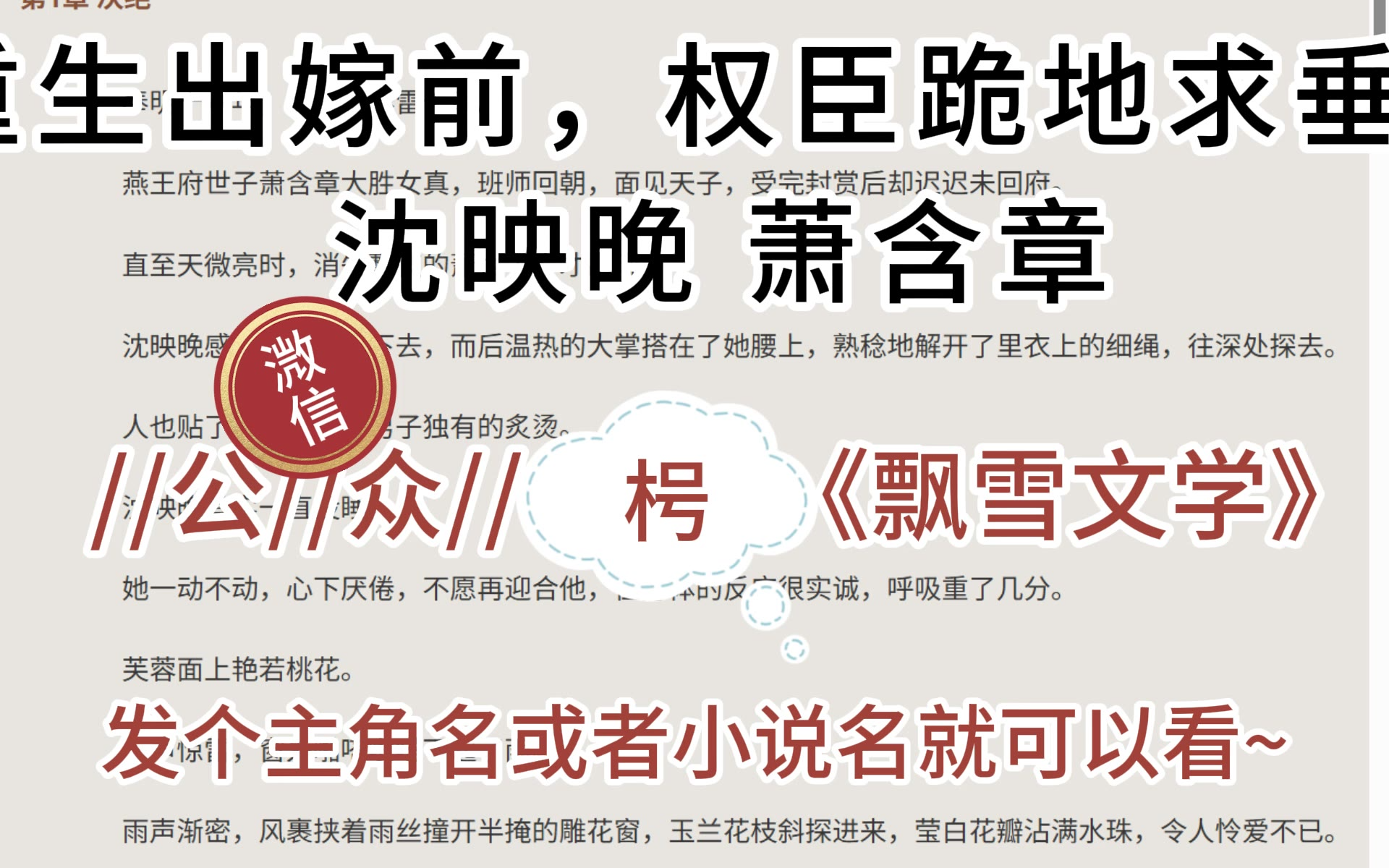《沈映晚萧含章》小说:萧含章沈映晚——重生出嫁前,权臣跪地求垂青