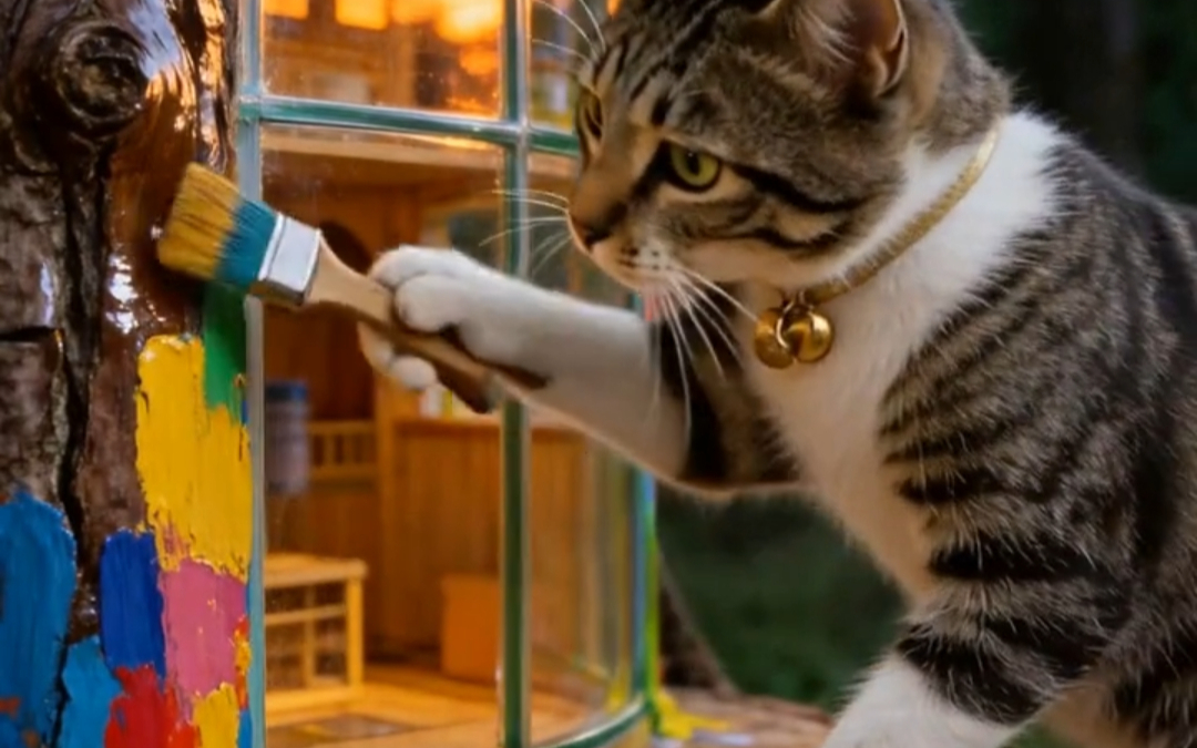 猫咪为了家人建树屋