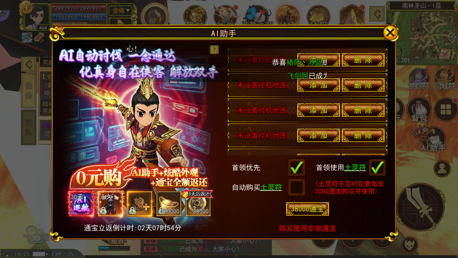 《热江高爆版》全新推出AI 助手智能讨伐系统,专为高爆版快节奏打宝养成设计,以全自动巡航机制彻底解放玩家双手,让上班族、休闲党也能高效积累装备、材料与资源,轻松跟上高爆版的成长节奏。一、核心功能:地图