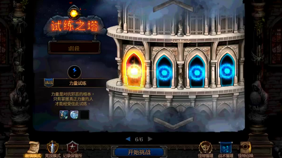 第二季增加的新元素之一,试炼之塔。这个试炼之塔有一个前提,那就是通关20关所有的剧情任务以后开放。试炼之塔也可以算是强化版的剧情模式但是又有些不一样,一共10层每层4关。难度更高但相应的奖励也更加丰富