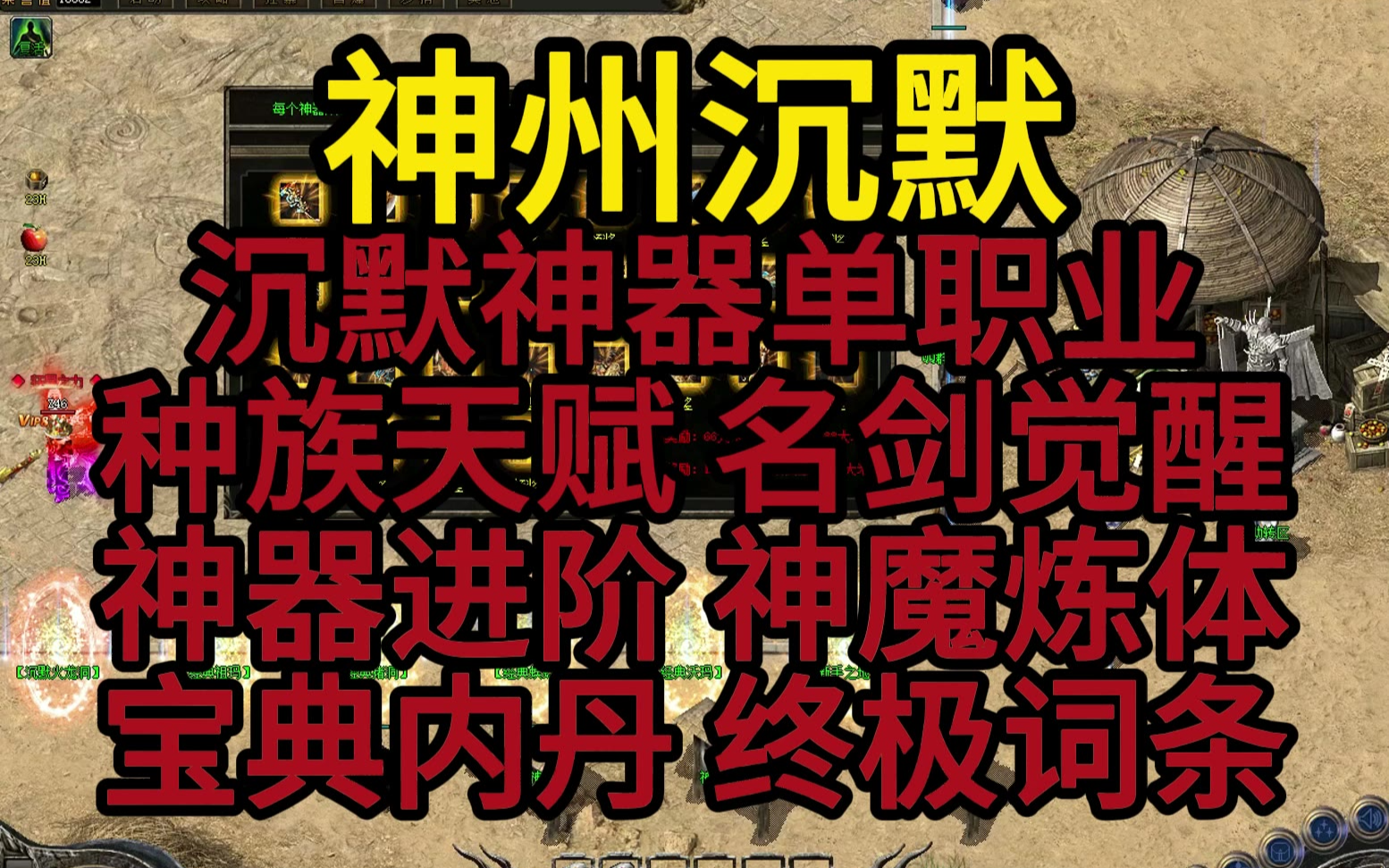 热血传奇《神宠沉默》神器专属单职业 种族天赋 名剑觉醒 神器进阶 神魔炼体 宝典内丹 终极词条 心魔