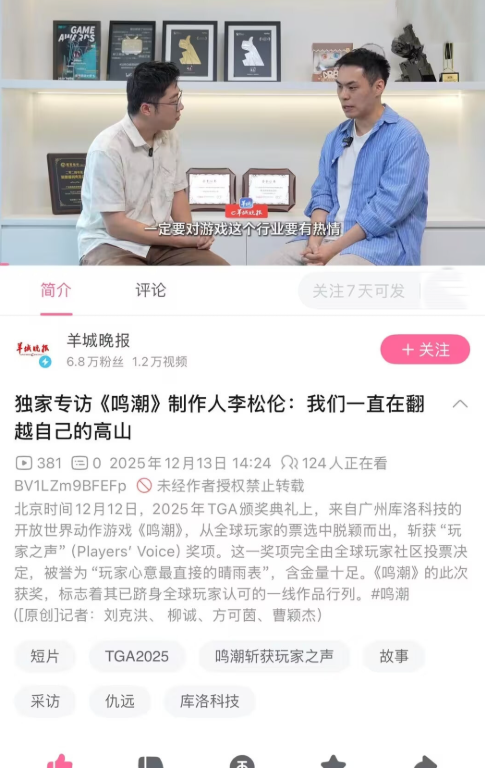 1138次播放 | 08:52再获国际大奖,接棒《黑神话:悟空》,独家专访《鸣潮》制作人李松伦