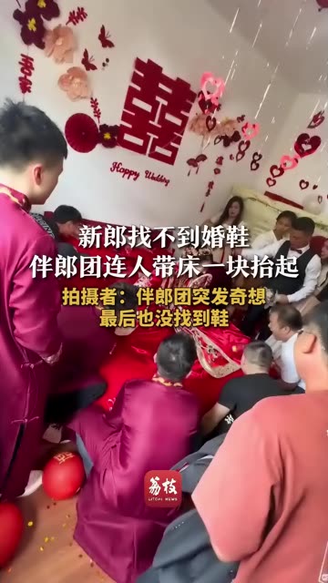 1144次播放 | 00:22新郎找不到婚鞋 伴郎团连人带床一块抬起 拍摄者:伴郎团突发奇想 最后也没找到鞋