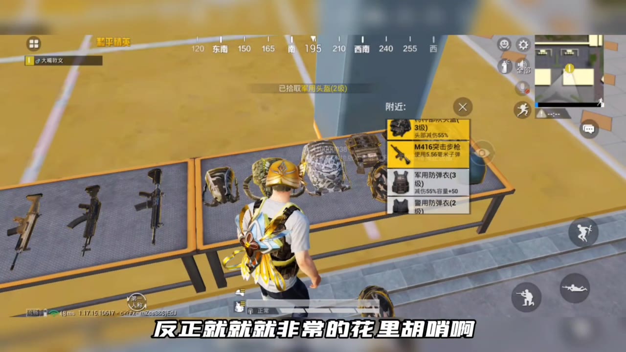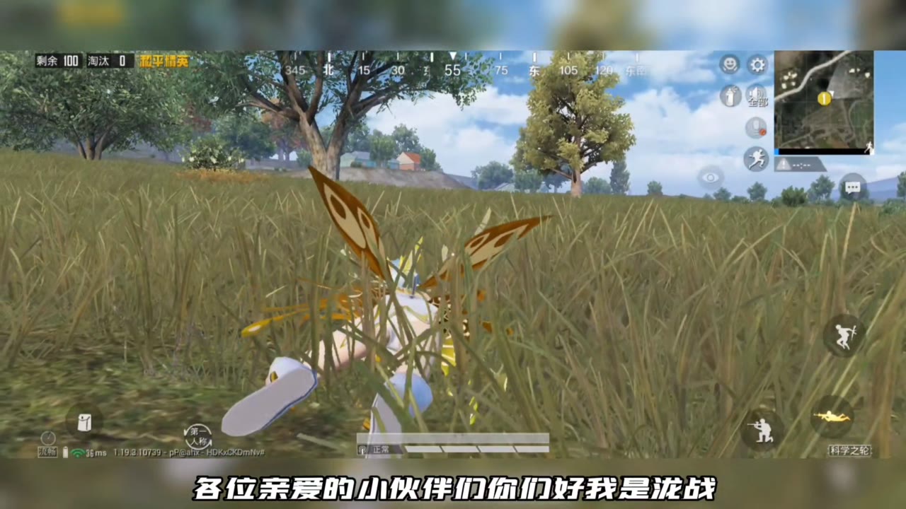 和平精英金灿灿的庄周梦蝶皮肤实战效果,趴草里真像一只大虫子