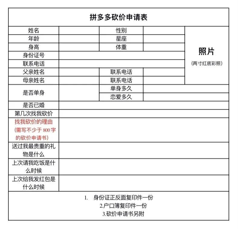 拼多多砍价申请表