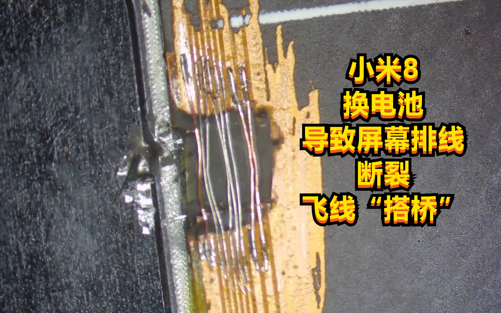 手机换电池导致屏幕排线断裂,检测断的不多,手术飞线“搭桥”解决问题