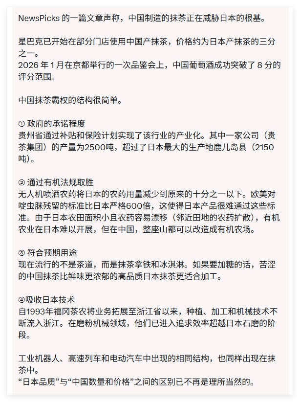 日本人认为中国制造的抹茶正在威胁日本的根基。