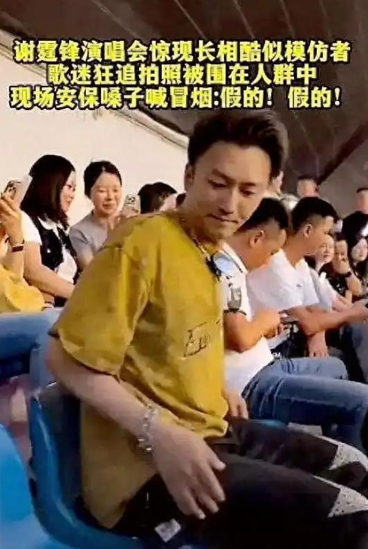 10月6日至7日,谢霆锋演唱会在重庆奥体中心体育场举行。多段视频显示,一名长相酷似谢霆锋的模仿者出现在人群中,歌迷们追着拍照。现场安保人员一边维持秩序一边高喊“假的假的,散了散了”,但劝阻见效甚微,仍