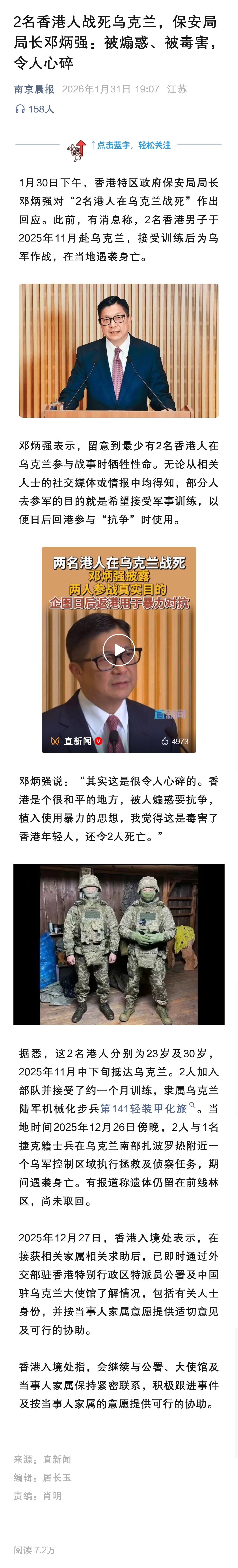 共3张两香港男子战死乌克兰,香港保安局局长回应