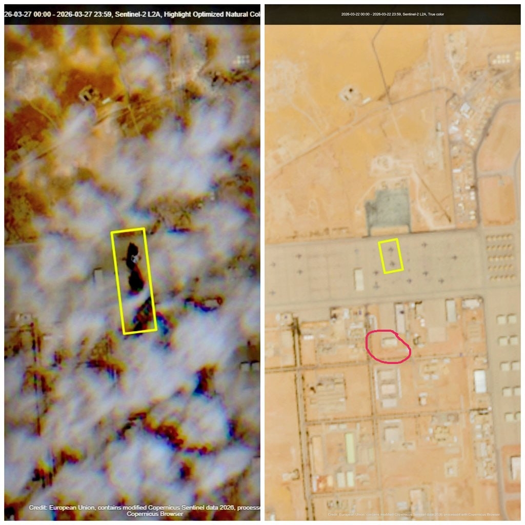 2026-3-29已确证美军首架E-3“哨兵”空中预警机被伊朗彻底摧毁据报道,新图像显示美国空军E-3哨兵预警机于周五在沙特阿拉伯苏丹王子空军基地遭伊朗袭击被击毁。该图与81-0005号相符,该编号为