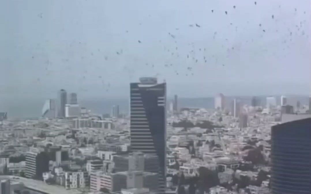 共4张3月25日以色列,上万只乌鸦笼罩特拉维夫并飞离示其亡国之兆