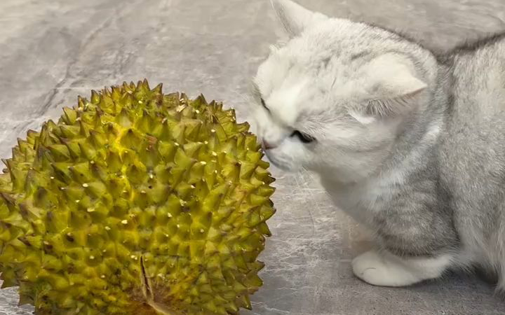 让猫猫闻闻自制的榴莲冰淇淋