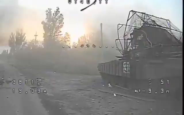 俄军光纤KVN无人机在苏梅州的反无人机走廊内锁定了一辆艾布拉姆斯主战坦克。